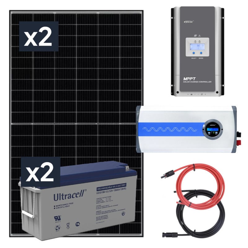 Dzięki dwóm akumulatorom żelowym Ultracell 150Ah, system jest w stanie przechowywać energię, którą można wykorzystać w przypadku awarii sieci elektrycznej. Zasilanie z baterii automatycznie włącza się, gdy dostępna energia z paneli fotowoltaicznych nie wystarcza, zapewniając ciągłość pracy urządzeń elektrycznych. To sprawia, że zestaw jest niezastąpiony w sytuacjach kryzysowych.
