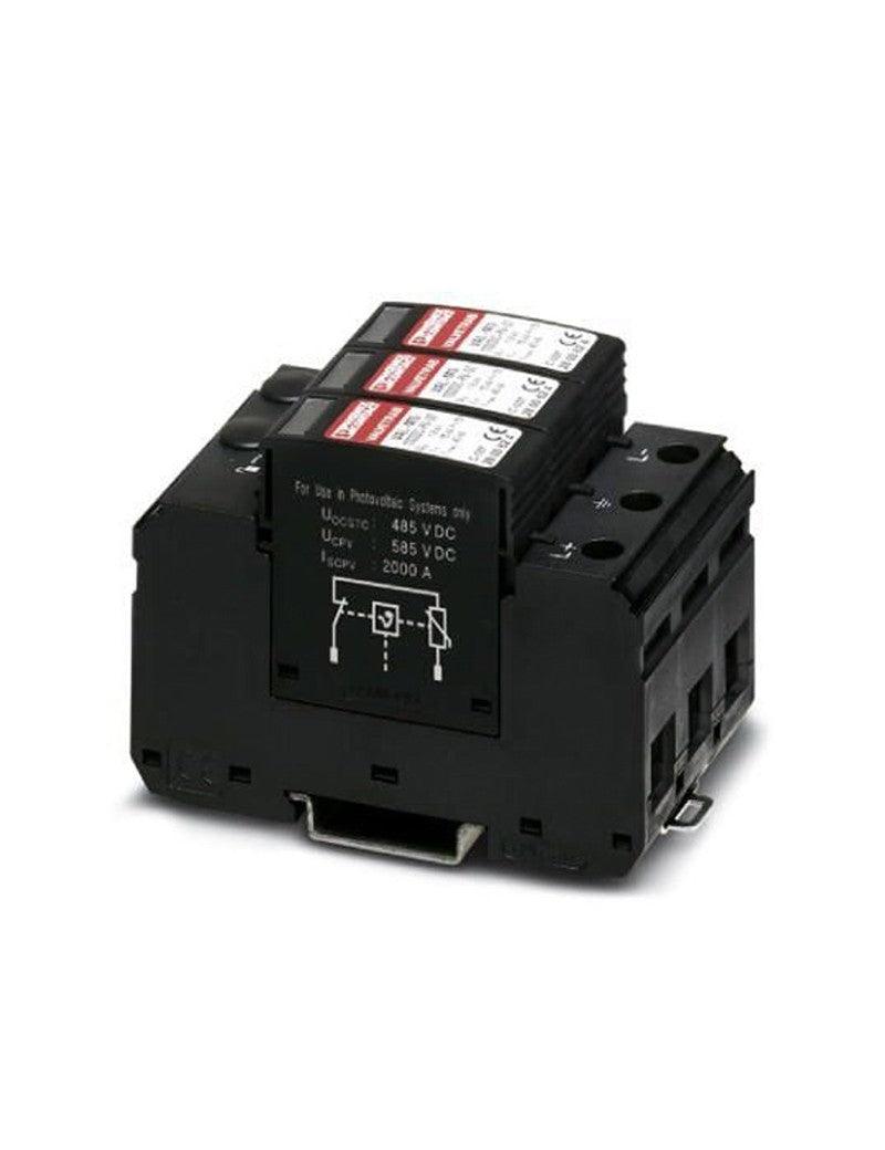 Ogranicznik przepięć przeznaczony dla 2-biegunowych izolowanych i uziemionych systemów napięcia stałego 1000 V DC, montowany na szynie nośnej. Posiada 3-biegunową podstawkę oraz trzy wtykowe elementy ochronne z kontrolą termiczną i wskaźnikiem stanu na każdym wtyku.