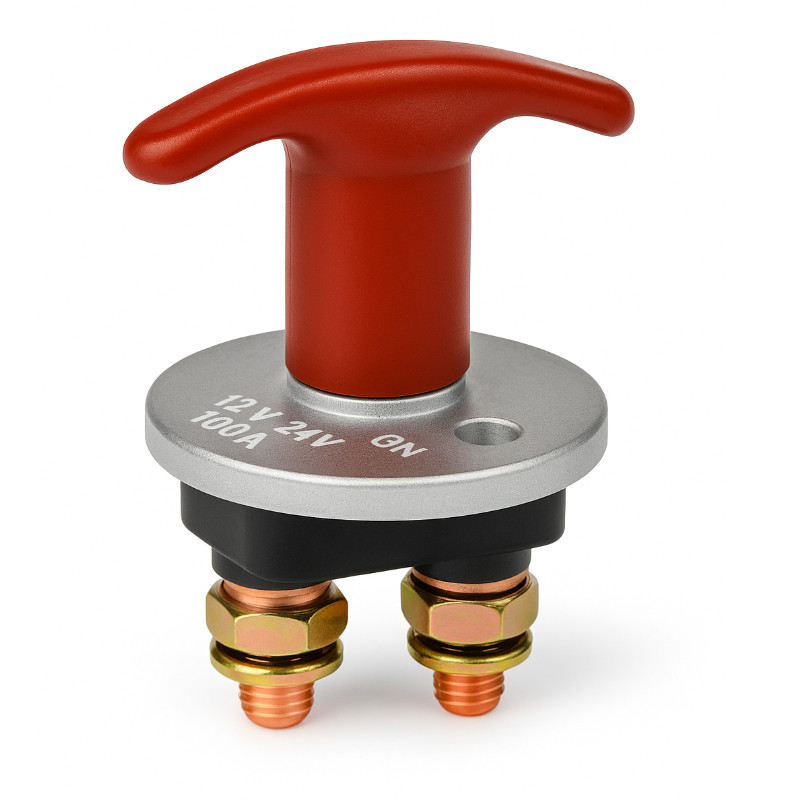 250 A. Zapewnia szybkie i bezpieczne odcięcie zasilania w pojazdach, łodziach, kamperach oraz systemach off-grid, zwiększając bezpieczeństwo całej instalacji. Zaprojektowany do niskonapięciowych systemów zasilania w motoryzacji, zastosowaniach morskich oraz autonomicznych układach fotowoltaicznych, gdzie wymagana jest niezawodna separacja akumulatora. Może pełnić rolę głównego wyłącznika serwisowego lub elementu bezpieczeństwa w skrzynkach i szafach zasilających (np. Szafa FF01-6615-12BL V2 z termostatem), instalacjach PV off-grid, kamperach, łodziach oraz innych systemach, w których wymagane jest szybkie i pewne odłączenie akumulatora.
