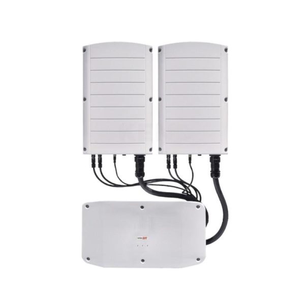 Falownik SolarEdge SE66.6K z technologią Synergy (SE66.6K-RW00IBNM4 z 2 x SESUK-RW00INNN4). Posiada funkcje wstępnego przekazania do użytkowania w celu automatycznej walidacji komponentów systemu i okablowania na etapie montażu instalacji i przed podłączeniem do sieci. Niezależne działanie każdej jednostki synergicznej wydłuża czas bezawaryjnej pracy i ułatwia obsługę. Wbudowane czujniki temperatury wykrywają awarie w okablowaniu, zapewniając zwiększoną ochronę i bezpieczeństwo. Wbudowana ochrona przed skutkami zwarć łukowych i opcjonalne szybkie wyłączanie. Wbudowana funkcja monitorowania na poziomie modułu z komunikacją przez sieć Ethernet lub komórkową w celu zapewnienia pełnej widoczności systemu.